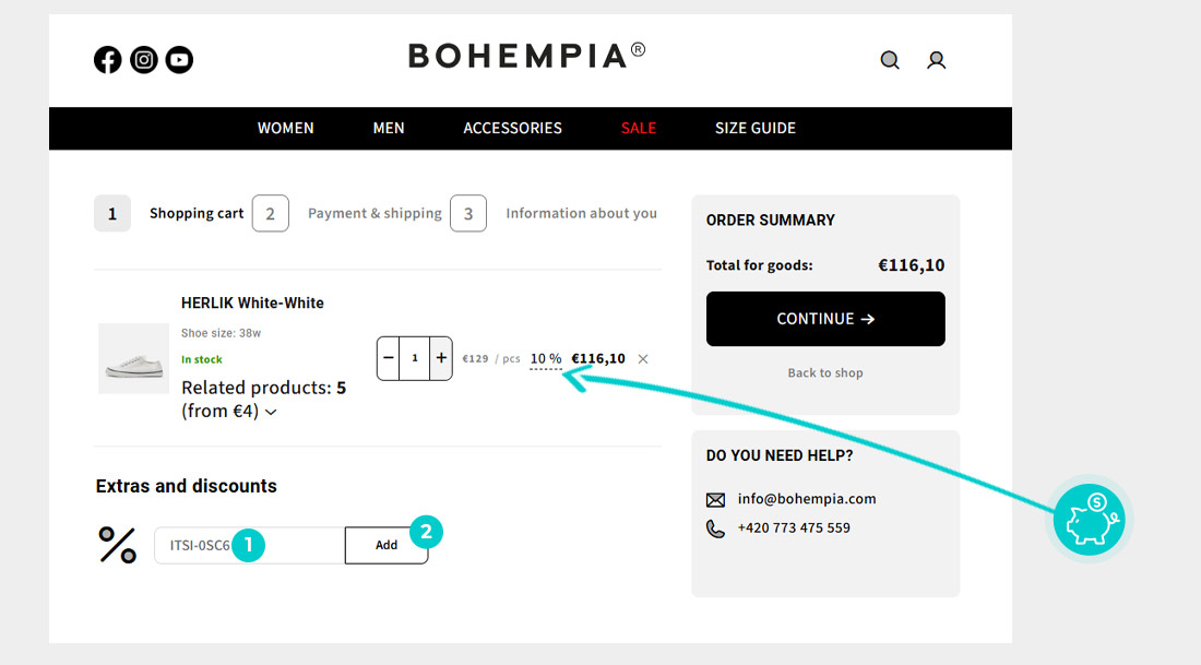 Čítať viac ...Neviete, ako presne fungujú zľavové kódy na Bohempia.eu? Ponúkame Vám postup, ako si pri nákupe môžete uplatniť zľavové kódy rýchlo a jednoducho: