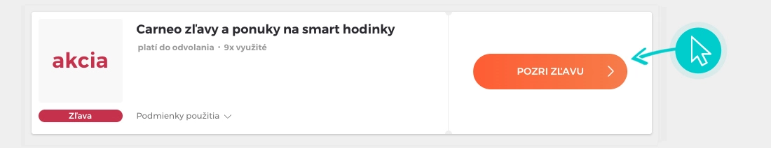 Vyberte si na našej stránke konkrétnu Carneo zľavu a kliknite na tlačidlo „Pozri zľavu“. Automaticky budete presmerovaný priamo na akciovú ponuku v internetovom obchode Carneo.sk, kde môžete produkt nakúpiť so zľavou.