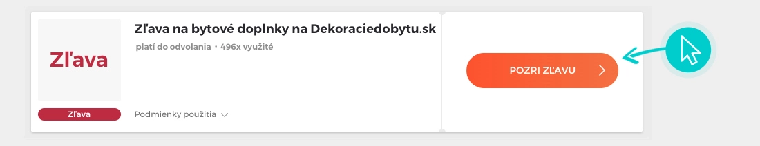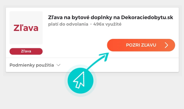 Vyberte si na našej stránke konkrétnu Dekorácie do bytu zľavu a kliknite na tlačidlo „Pozri zľavu“. Automaticky budete presmerovaný priamo na akciovú ponuku v internetovom obchode Dekoraciedobytu.sk, kde môžete produkt nakúpiť so zľavou.