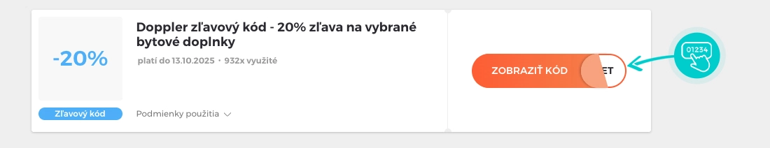 Vyberte si konkrétny zľavový kód na našej stránke, ktorý si chcete uplatniť v e-shope Dopplershop.sk. Kliknite na oranžové tlačidlo „Zobraziť kód“.