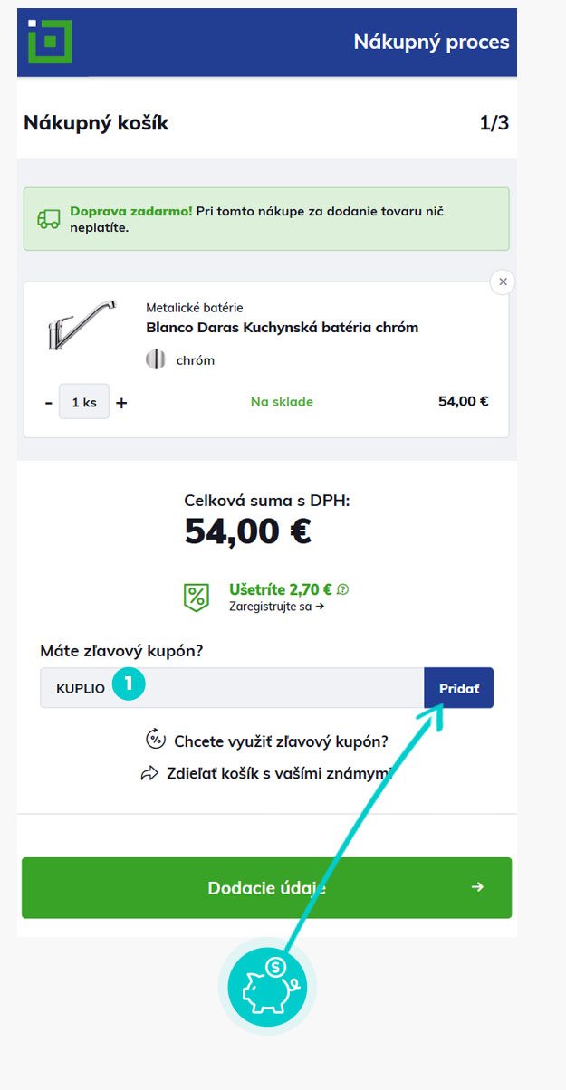 Zľavový kód môžete použiť len v procese vytvárania objednávky, a to jeho zadaním do správneho políčka v prvom kroku objednávania. Ako posledný krok nezabudnite potvrdiť uplatnenie kódu.
