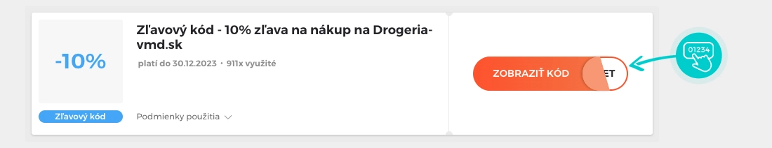 Vyberte si konkrétny zľavový kód na našej stránke, ktorý si chcete uplatniť v e-shope Drogeria-vmd.sk. Kliknite na oranžové tlačidlo „Zobraziť kód“.