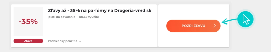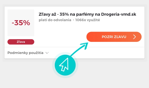 Vyberte si na našej stránke konkrétnu Drogéria-vmd zľavu a kliknite na tlačidlo „Pozri zľavu“. Automaticky budete presmerovaný priamo na akciovú ponuku v internetovom obchode Drogéria-vmd, kde môžete produkt nakúpiť so zľavou.
