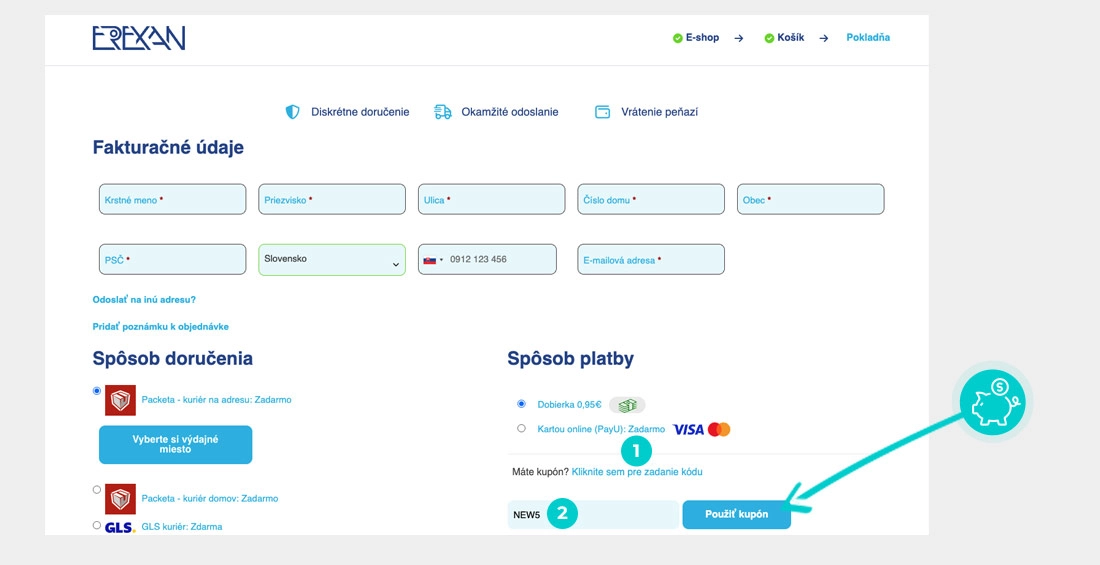 Neviete, ako presne fungujú zľavové kódy na Erexan.sk? Ponúkame Vám postup, ako si pri nákupe môžete uplatniť zľavové kódy rýchlo a jednoducho: