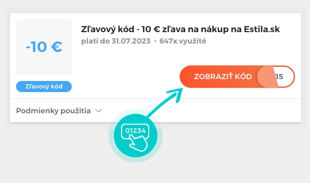 Vyberte si konkrétny zľavový kód na našej stránke, ktorý si chcete uplatniť v e-shope Estila.sk. Kliknite na oranžové tlačidlo „Zobraziť kód“.