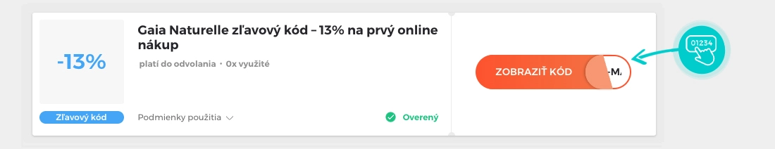 Vyberte si konkrétny zľavový kód na našej stránke, ktorý si chcete uplatniť v e-shope Gaianaturelle.eu. Kliknite na oranžové tlačidlo „Zobraziť kód“.