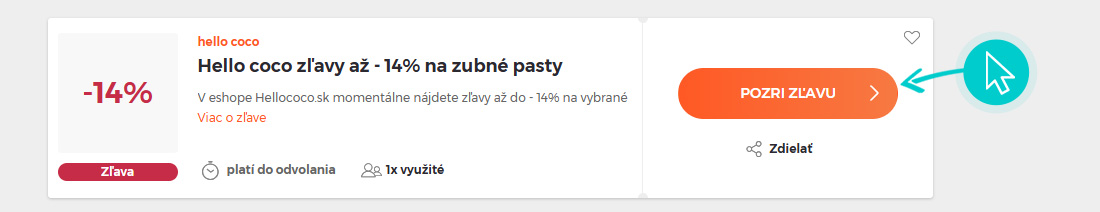 Vyberte si na našej stránke konkrétnu hello coco zľavu a kliknite na tlačidlo „Pozri zľavu“. Automaticky budete presmerovaný priamo na akciovú ponuku v internetovom obchode Hellococo.sk, kde môžete produkt nakúpiť so zľavou.