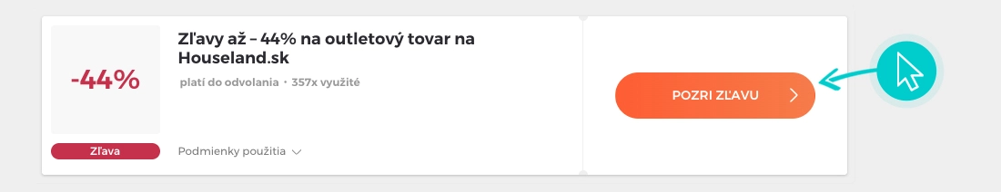 Vyberte si na našej stránke konkrétnu Houseland zľavu a kliknite na tlačidlo „Pozri zľavu“. Automaticky budete presmerovaný priamo na akciovú ponuku v internetovom obchode Houseland.sk, kde môžete produkt nakúpiť so zľavou.