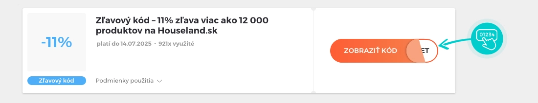 Vyberte si konkrétny zľavový kód na našej stránke, ktorý si chcete uplatniť v eshope Houseland.sk. Kliknite na oranžové tlačidlo „Zobraziť kód“.