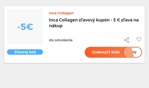 Vyberte si konkrétny zľavový kód na našej stránke, ktorý si chcete uplatniť v e-shope Incacollagen.sk. Kliknite na oranžové tlačidlo „Zobraziť kód“.