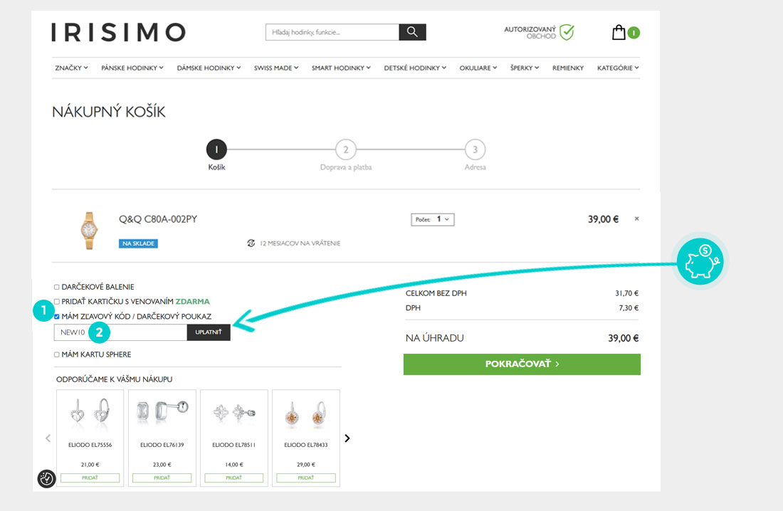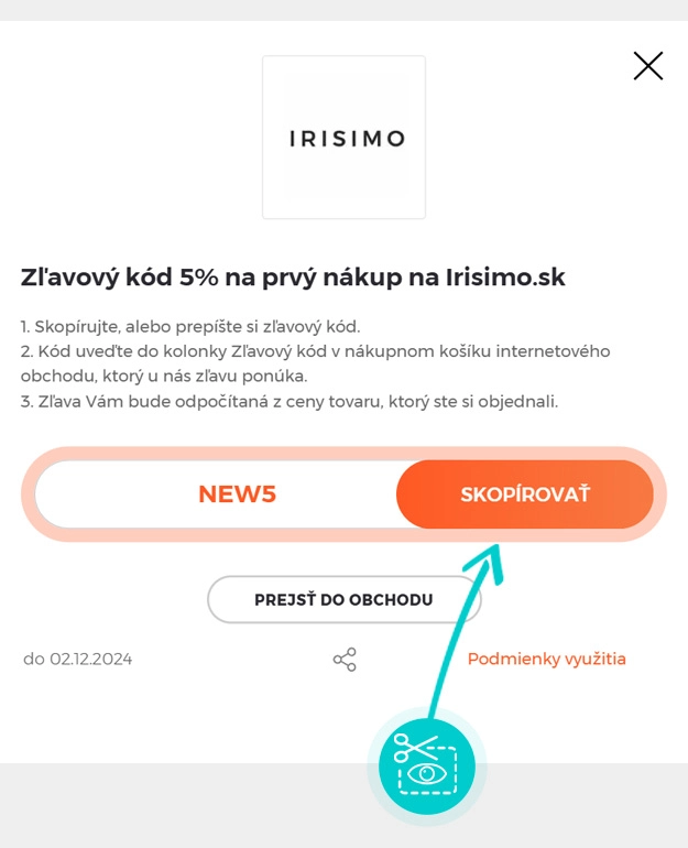 Skopírujte alebo si odpíšte zľavový kód a kliknite na tlačidlo „Prejsť do obchodu“. Následne budete presmerovaný priamo do eshopu Irisimo.sk.