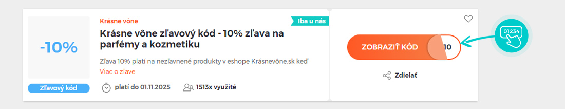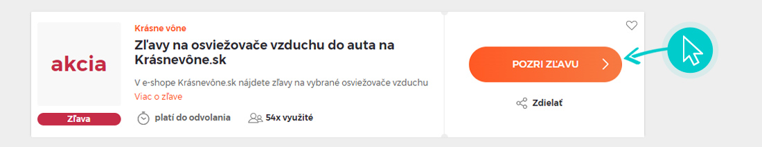 Vyberte si na našej stránke konkrétnu Krásne vône zľavu a kliknite na tlačidlo „Pozri zľavu“. Automaticky budete presmerovaný priamo na akciovú ponuku v internetovom obchode Krásne vône, kde môžete produkt nakúpiť so zľavou.