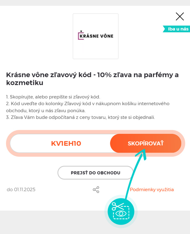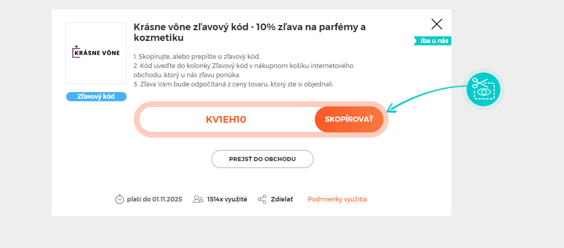 Skopírujte alebo si odpíšte zľavový kód a kliknite na tlačidlo „Prejsť do obchodu“. Následne budete presmerovaný priamo do e-shopu Krasnevone.sk.