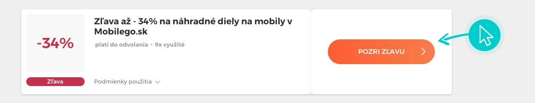 Vyberte si na našej stránke konkrétnu Mobilego zľavu a kliknite na tlačidlo „Pozri zľavu“. Automaticky budete presmerovaný priamo na akciovú ponuku v internetovom obchode Mobilego.sk, kde môžete produkt nakúpiť so zľavou.