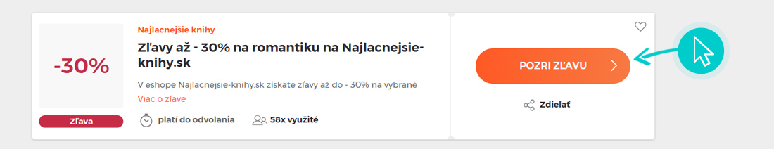 Vyberte si na našej stránke konkrétnu Najlacnejšie knihy zľavu a kliknite na tlačidlo „Pozri zľavu“. Automaticky budete presmerovaný priamo na akciovú ponuku v internetovom obchode Najlacnejsie-knihy.sk, kde môžete produkt nakúpiť so zľavou.
