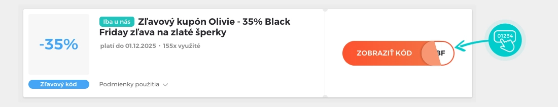 Vyberte si konkrétny zľavový kód na našej stránke, ktorý si chcete uplatniť v eshope Olivie.sk. Kliknite na oranžové tlačidlo „Zobraziť kód“.