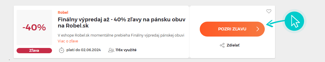 Vyberte si na našej stránke konkrétnu Robel zľavu a kliknite na tlačidlo „Pozri zľavu“. Automaticky budete presmerovaný priamo na akciovú ponuku v internetovom obchode Robel.sk, kde môžete produkt nakúpiť so zľavou.