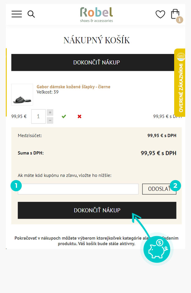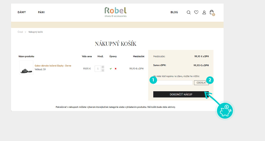 Vyberte si produkt v eshope Robel.sk, o ktorý máte záujem, stlačte tlačidlo „Do košíka“ a produkt sa automaticky vloží do nákupného košíka. Priamo v nákupnom košíku nájdete vpravo políčko „Ak máte kód kupónu na zľavu, vložte ho nižšie:“. Tu vložte skopírovaný zľavový kód alebo ho ručne vpíšte a potvrďte tlačidlom „Odoslať“.